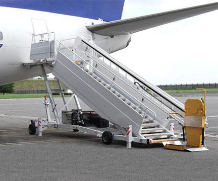 Con esta plataforma se pueden llevar discapacitados con su propio silla de rueda hasta la puerta del avion en una manera segura y cómodo.