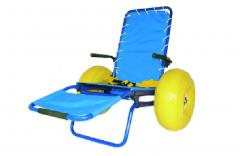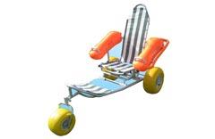 La silla anfibia SAT-2R de 2 ruedas para playa es la indicada para desplazar a personas con movilidad reducida y/o gente mayor en diferentes situaciones desde la arena hasta el agua.
